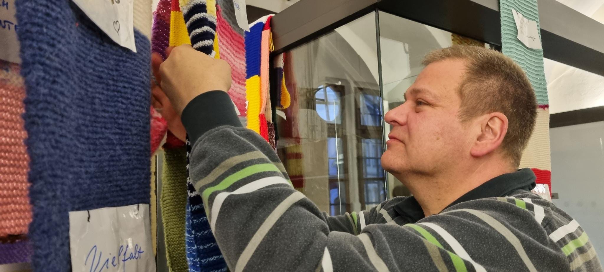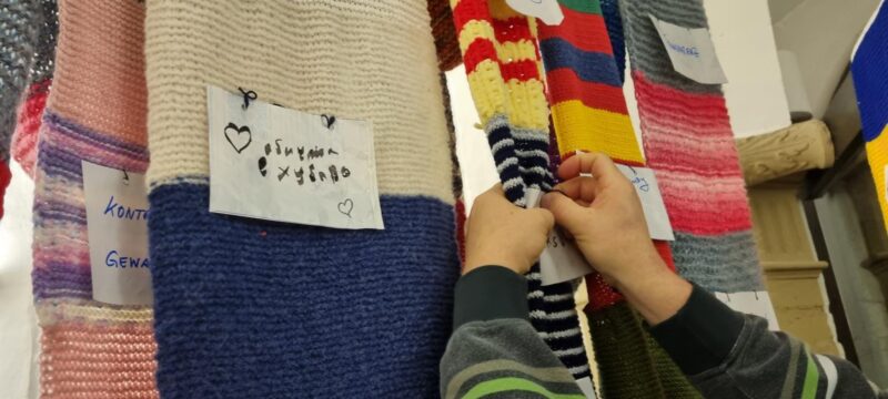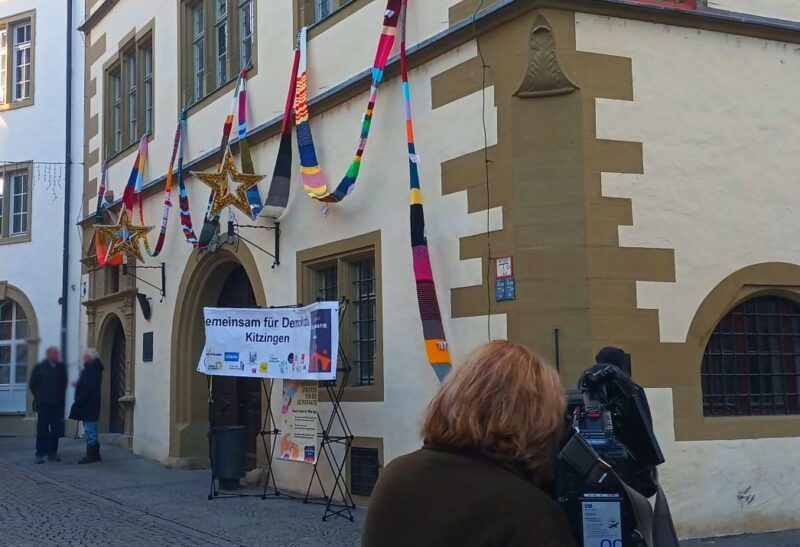 Es war eine tolle Möglichkeit, gemeinsam etwas zu bewegen, ins Gespräch zu kommen und das Engagement für eine starke Demokratie in Kitzingen zu zeigen. Am 18.12. wurde das gemeinsam gestrickte Teil öffentlich um das Rathaus platziert.